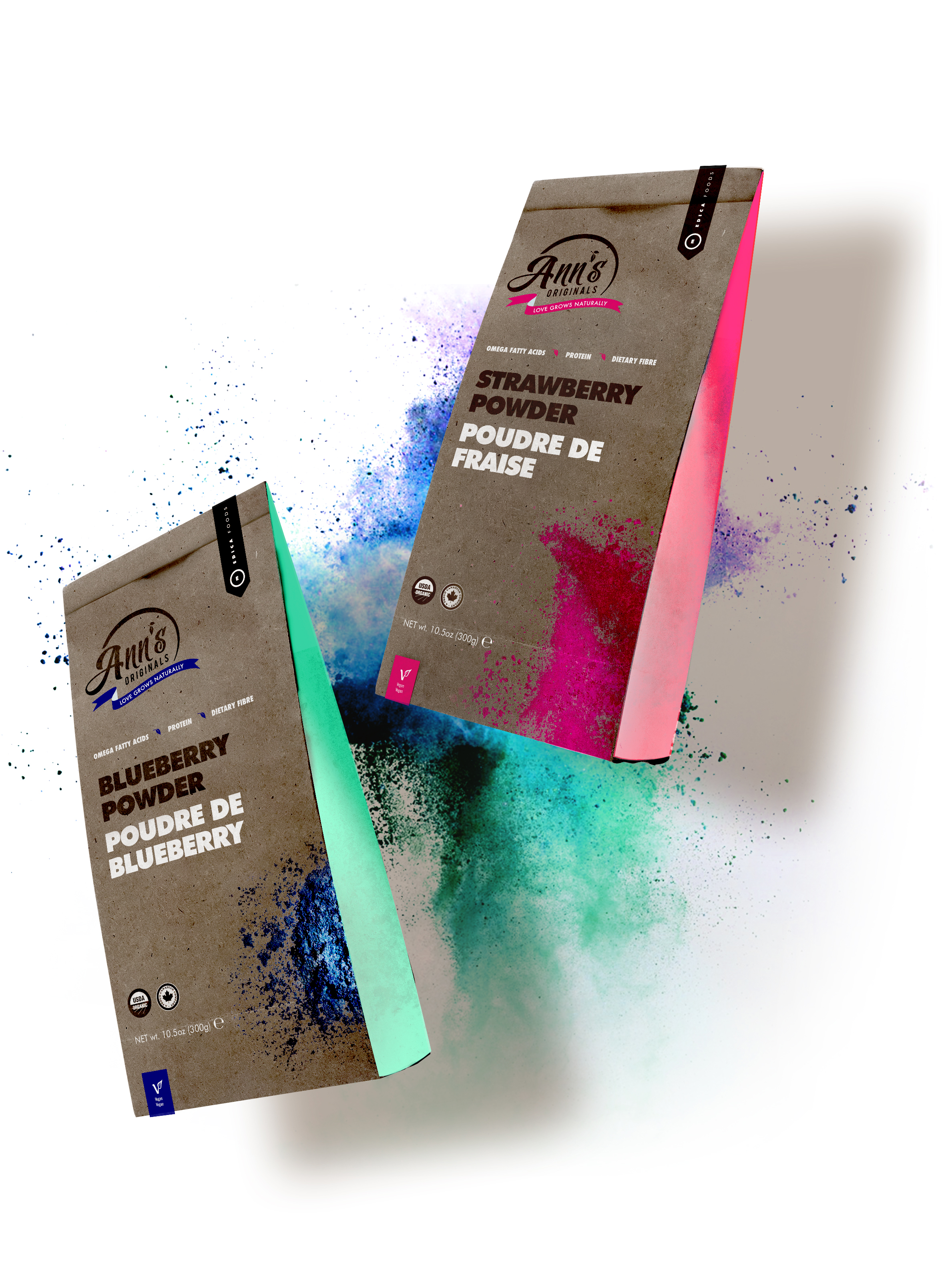 Ann’s Originals required a new vibrant look and feel that better reflected the nature and freshness of this kind of product. The package redesign was inspired by a combination of the powder’s organic nature and colour explosions.